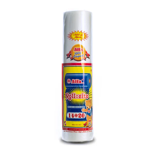 La bolsa rollo TR 14×20 desglosable es una bolsa transparente de polietileno, diseñada para ser fácilmente separada de un rollo, con dimensiones aproximadas de 14 por 20 pulgadas.