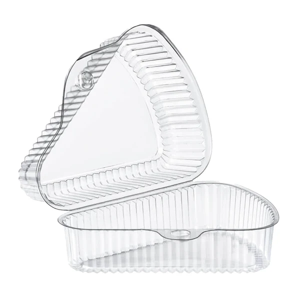 Envase de Plásticos Triangular para torta, diseñados específicamente para porciones individuales de tarta, pasteles y otros postres. Estos envases suelen ser transparentes para mostrar el postre.