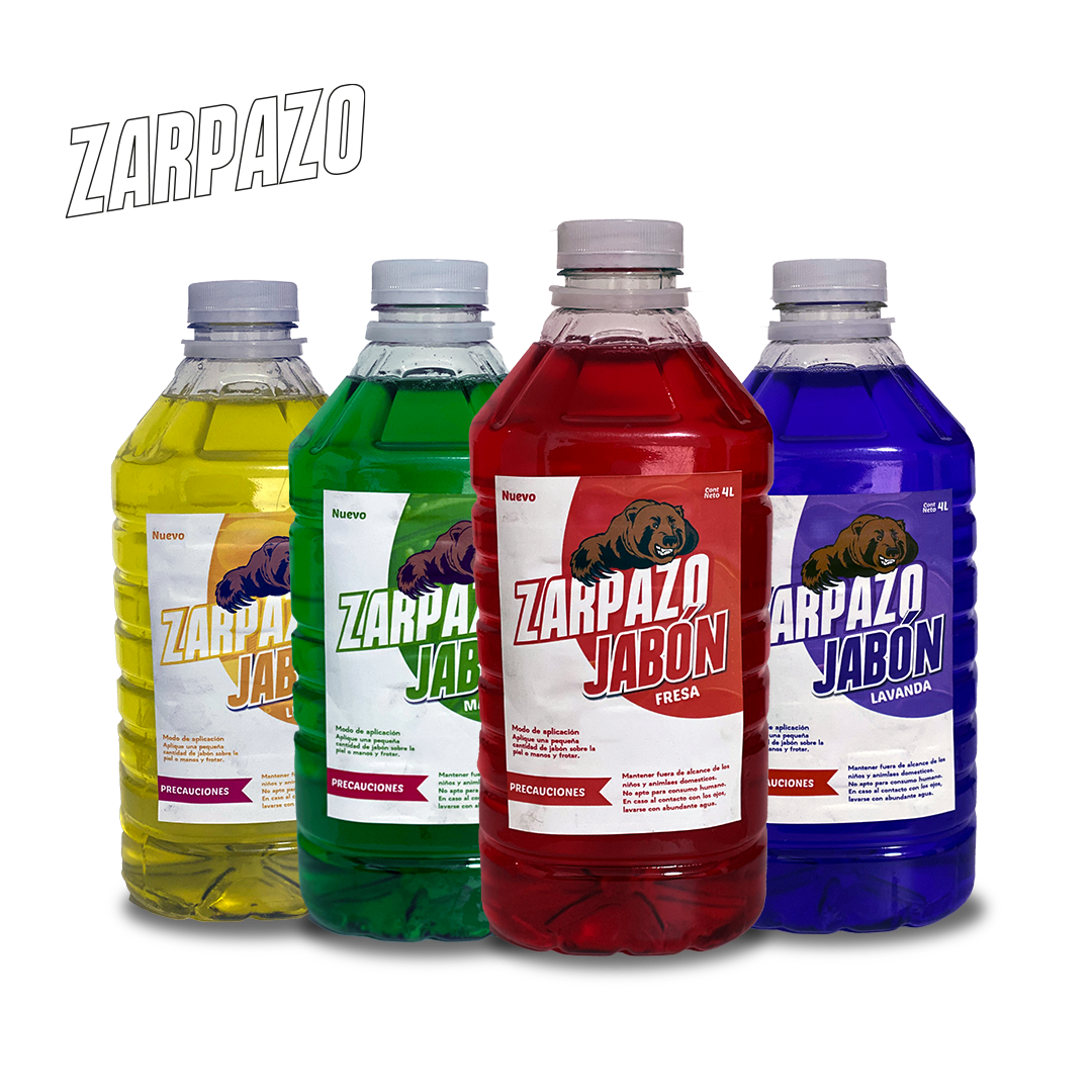 Jabón Líquido Perfumado Zarpazo presentación en galón. Agradables fragancias, producto neutro, protege la piel evitando el resecamiento por el lavado continuo.