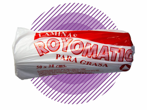 Estos productos están diseñados para absorber o contener la grasa de alimentos fritos o preparados. (también conocido como papel poligrasa o papel parafinado)