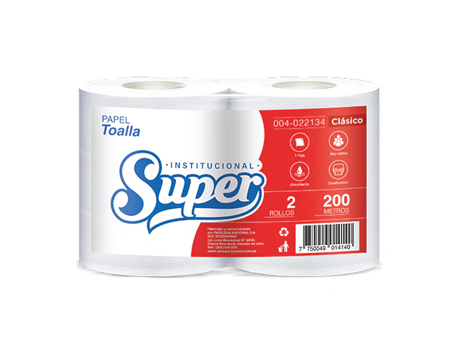 Papel Toalla Rollo Blanco Gofrado Super UH 2x200mt